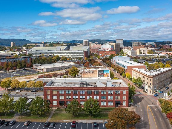 First floor unit in the historic Southern Railway Building in the desirable Southside! Enjoy the convenience of one-level living in this 2 bedroom, 2 bath condo within walking or biking distance of shopping, restaurants, the entertainment district and Battle Academy. The Market Street Lofts boast an industrial style with tall ceilings, exposed, painted ductwork and original brick accent walls. The kitchen is open to the living area and has a center island with pendant lighting, granite countertops, tile backsplash, soft- close cabinetry and stainless appliances. The living area has an inset electric fireplace and a wall of windows providing wonderful natural lighting. The primary bedroom has a walk-in closet with organizer system and a private bath with a tile and glass shower. The guest bedroom shares the use of the full hall bath, also with a tile and glass shower, and there is a stackable washer/dryer closet in the hallway. The building offers secure, coded access, a rooftop deck with grill, and a fenced dog run area. Whether you are looking for a central primary residence or a weekend retreat, this could be the opportunity you have been seeking, so please call for more information or to schedule your private showing today. Information is deemed reliable but not guaranteed. Buyer to verify any and all information they deem important.