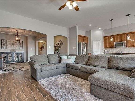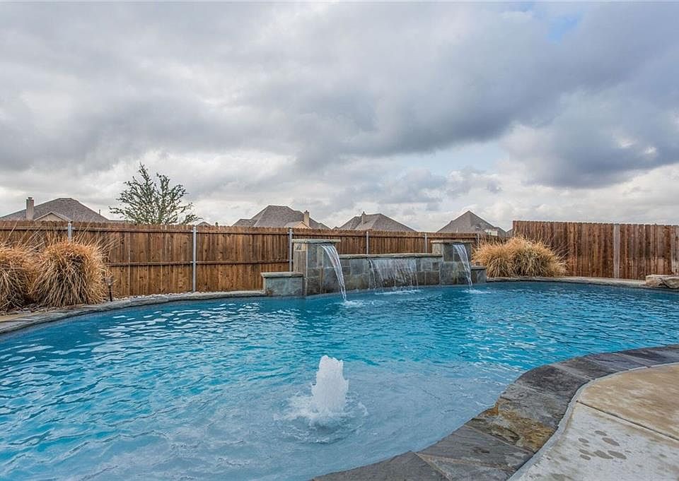 WELCOME HOME to your beautifully updated single story in Haslet's Willow Ridge. Great location within walking distance to the community park, Schluter Elementary, Adams Middle School, and Eaton High School. Wood-look tile throughout for low maintenance living. Stainless appliances and granite counters are sure to please your inner-chef! Spend evenings in the open-concept living area admiring the custom travertine fireplace. Front room with french doors can be used as a dedicated office or second living area. Retreat to the large master suite with garden tub, separate vanities, and walk in closet. The back yard is great for entertaining or relaxing with a stunning salt-water pool and fresh landscaping!