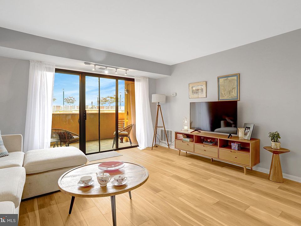 Light Filled, updated 2-bed 2-bath condo with modern upgrades in the heart of Courthouse Arlington. Modern and updated, this home features beautiful stylish upgrades, making it move-in ready. This two-bedroom layout is amazing as both bedrooms are separate suites on either end of the condo for ultimate privacy, and it faces due east for glorious morning sunlight. From the covered balcony, you can glimpse the Washington Memorial, with extra storage right on the balcony. The smart floor plan maximizes space and functionality, with ample closet space, included storage, and a deeded indoor garage parking spot adding convenience. The living and separate dining room flow seamlessly onto an expansive balcony, perfect for morning coffee or evening relaxation. A wall of windows fills each space with natural light. The updated kitchen is a chef’s delight, boasting quartz countertops, under cabinet lighting, abundant storage and generous counter space complete with breakfast bar. Each spacious bedroom offers a private retreat and large closets, complete with remodeled bathrooms featuring modern fixtures and finishes. The parking spot provides easy vehicle access, with additional room for bike storage. Located in the vibrant Courthouse neighborhood, you’re just a block from a weekly farmer’s market and near Courthouse Metro station (1/4 mile), making commuting effortless. Proximity to transportation, trails, Amazon HQ2, National Landing, Georgetown, DCA, and the Pentagon enhances this prime location’s appeal. Woodbury Heights amenities include an outdoor pool, lounge, fitness center, concierge, and on-site management. Hot water and window maintenance are included in the HOA fees. Surrounded by dining, shopping, educational, and entertainment options, as well as parks, this condominium offers a lifestyle of comfort, convenience, and enjoyment. Don’t miss the opportunity to own this stunning home in one of Arlington’s most sought-after communities—join us at the open house this weekend and see why it's the perfect fit for your next chapter!