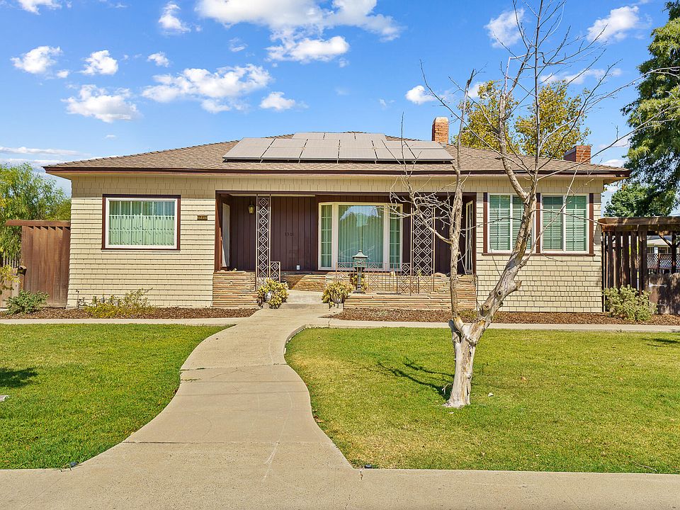 Full of character and vintage appeal, this 1911 NE Hanford home offers a spacious and flexible layout with touches that speak to a bygone era. The main residence features 3 bedrooms and 2 bathrooms, along with a formal living room, separate dining area, and a cozy family room. The kitchen includes a breakfast nook that adds to the home's inviting feel. Multiple fireplaces throughout the home enhance its warmth and historic charm, while the detached ADU provides a valuable bonus: a 1-bedroom, 1-bath unit complete with its own kitchen, breakfast nook, and living space — perfect for guests, extended family, or potential passive income. Located within a half mile of Hanford High School and Lacey Park, this property combines classic character with everyday convenience. Solar panels add a practical touch to this timeless gem.