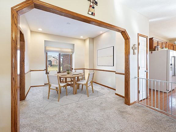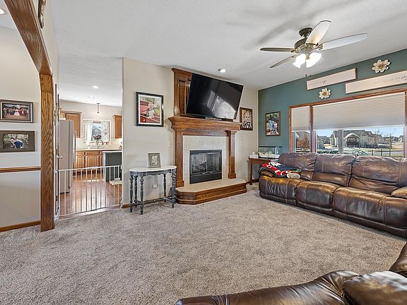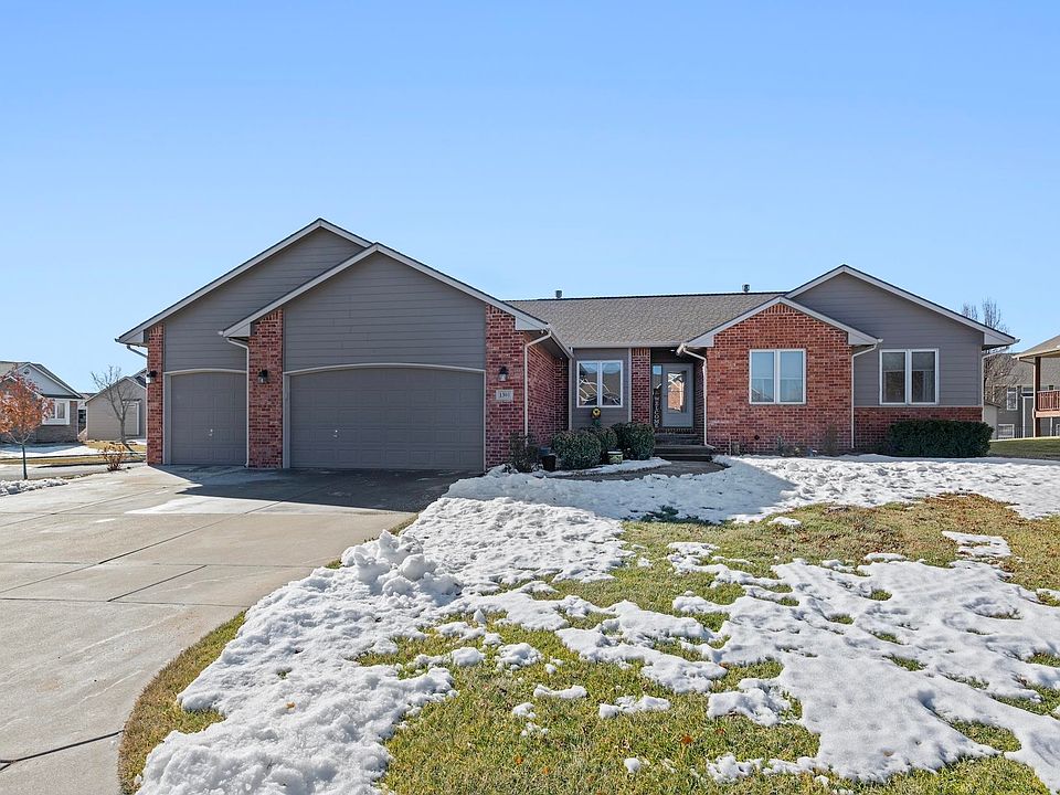 Spacious ranch home in the sought-after Liberty Park neighborhood of Northwest Wichita! Nestled on a 1/3-acre lot within the Maize School District, this home offers over 2,700 sq ft of finished space, 4 bedrooms, 3 full baths, and a 3-car garage. Step inside to find newer main floor carpet and a new HVAC system for peace of mind. The inviting living room features a 2-way gas fireplace, creating a cozy ambiance that extends into the informal dining/hearth room. A formal dining room opens to the living room. The chef’s kitchen is well-equipped with an island and eating bar, ample cabinetry, built-in microwave, and bay windows framing the backyard view. Kitchen appliances stay with the home. (Stainless refrigerator in Utility Room does not stay). sliding doors lead to the backyard deck, perfect for indoor-outdoor living. The primary suite is a retreat of its own, boasting a coffered ceiling, walk-in closet, and an en suite bath with double sinks, a large soaker tub, and a stand-alone shower. Two additional bedrooms, a full hall bath, and a convenient main floor laundry complete the main level. Downstairs, the finished daylight basement features luxury vinyl plank flooring, a spacious family room, plenty of space for a game table, and a wet bar with Corian countertops—ideal for entertaining! The 4th bedroom is generously sized, a 3rd full bath and a small office provide extra conveniences. Outside, enjoy the large, fenced backyard, oversized covered patio, sprinkler system, and irrigation well. Roof new in 2019. Trampoline, TV mounts and reverse/osmosis system all stay. Located in a quiet neighborhood close to shopping, dining, churches and parks. With its impeccable features and prime location, this home offers the ultimate blend of luxury, comfort, and convenience. Don't miss your chance to make it yours today! Schedule your private showing today!