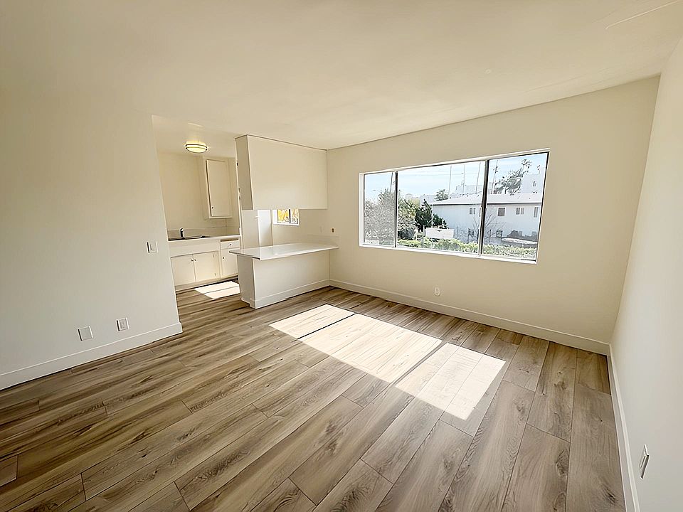 Renovated TOP FLOOR studio in a boutique building in the heart of Hollywood. New hardwood floors throughout. The kitchenette has lots of cabinets and counter space. NEW STOVE AND REFRIGERATOR ON THE WAY! Great light from big bay windows! Modern bathroom with tub/shower combo. Adjacent hallway corridor of additional built ins for storage. One parking space included with the rent, onsite laundry available. NO PETS. Near the studios, Hollywood attractions, and easy access to downtown LA and the west side. Call Greg to schedule a tour.