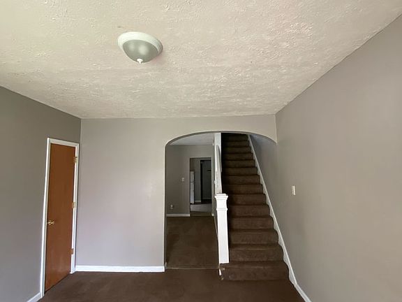 This home has carpet throughout the bottom floor and top floor in the bedrooms. Basement access is located in the kitchen and in there you will find the washer and dryer hookups.