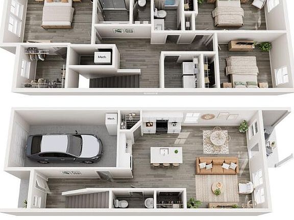 If you've been searching for the perfect 3-bedroom townhome that gives you living space, ample storage, and a cozy at-home feeling, the Griffin 3-bedroom is it. From the one car garage to the spacious closets and thoughtfully designed storage areas throughout the home, you'll have all the space you need to live in comfort and convenience. Downstairs, the open concept living area includes a bathroom, a corner pantry kitchen with lots of counterspace, kitchen island, main living area, and a convenient additional storage closet directly off the kitchen. Upstairs, you'll find the laundry room for added convenience, the owner suite with walk-in closet and a separate toilet room from the shower/vanity, an additional hallway-accessible bathroom, and two bedrooms with large closets. Get ready to live in luxury in the Griffin 3-bedroom.