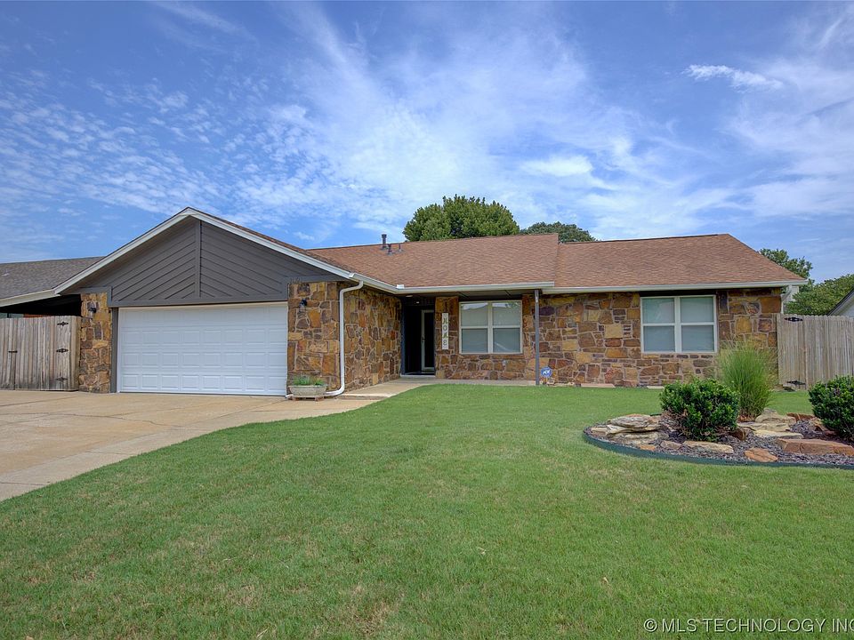 Covered front porch welcomes you to this fantastic updated home with lots of natural light! Move in Ready! Large living room with vaulted ceiling and rock fireplace. Great Florida room could be used as 2nd living space or office. Fresh interior and exterior paint, new interior fixtures, new dishwasher and range. All bedrooms have walk-in closets! Enjoy the backyard with the covered back patio, mature trees, and shed. Close convenient access to Highway 51 and the retail and restaurants that Broken Arrow has to offer.