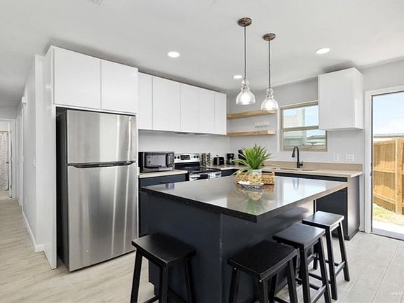 Brand new fourplex ready to move in July 2023. Wonderful floorplan with spacious main walk-in closet, one shower with modern tile and one tub. Wood tile flooring for classic look and low maintenance, custom kitchen with custom cabinets to ceilings! spacious kitchen islands with quartz counters, all appliances included! Shary Landing is located off Lark and Glasscock, in North Mission-South Alton area! Very close to major shopping centers, banks, pharmacies and schools. 8 carport spaces, fenced backyard. 9' cathedral ceilings, modern black fans and upscale chandeliers, unique mirrors and light fixtures will make this location a great place for tenants. 5 electric meters included. One water meter. High rents in the area $1300-$1350 per unit! CAP 8%+ Great School District with Sharyland ISD. Get your under contract soon!