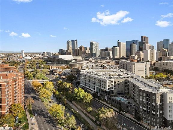 It's in a nice building that’s across the street from both The Golden Triangle AND the Santa Fe Arts District. Its alongside the S. Platte River/bikeway. Via something with wheels, it’d often be two-to-five minutes to the Auraria Campus, the Colorado Convention Center, Civic Center Park and the Central Business District. There are likely 100 bars or restaurants within 12 blocks of here. And, the closest King Soopers is more-or-less beneath you (about a 41-second commute).