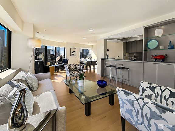 Step into effortless elegance at this beautifully remodeled First Hill condominium, where luxury meets convenience in a premier steel-and-concrete high-rise with 24/7 concierge, rooftop pool and spa, tennis and pickleball courts, and serene garden courtyard. Inside, refined design awaits—white oak floors, Carrara marble primary bath, quartz and limestone countertops, custom cabinetry, and Miele and Sub-Zero appliances. Enjoy a spacious entertaining area with wine closet. Southwest exposure with walls of windows, air conditioning, hospital-grade air purification, and filtered kitchen water. Includes electric vehicle charger, one oversized parking spot, and large storage unit. A true in-city oasis.