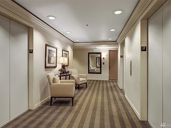 Rarely available western exposure, dazzling downtown views. High ceilings. 1 bedroom, 1 bath,+ guest 1/2 bath. 1st Hill corridor access to I-5, 520, downtown, premier medical facilities, even Whole Foods w/in a block. Pamper yourself with 24/7 experienced concierge service, rooftop pool,exercise room,outdoor tennis court, courtyard,storage,valet parking. Concrete/steel construction=luxury category. Walk-in closet +cedar lined closet. Enclosed balcony: your new home office with a stunning view!