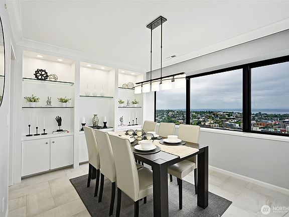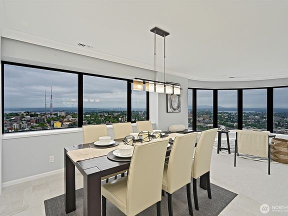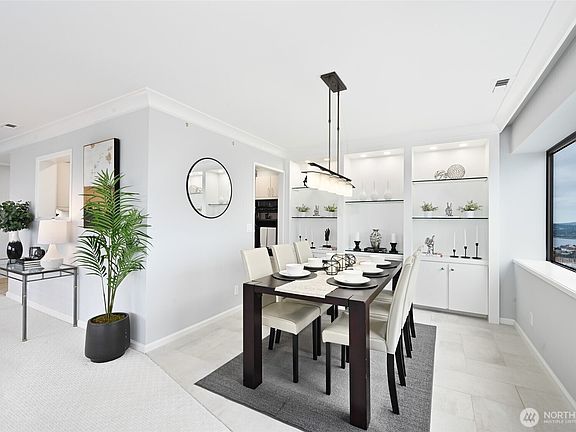 Urban Luxury awaits in this meticulous 2 br/2 ba, 1480sf condo located on the SE corner of the 28th floor. Featuring floor-to-ceiling windows with panoramic views of Mt. Rainier, Lk Washington & the Bellevue skyline. Primary suite is loaded w/ closets & walk-in shower. 2nd br is staged as office/media room. Add sofa bed or murphy bed to welcome guests. Pocket door closes for privacy. Fabulous kitchen w/ new cooktop & SUB-ZERO frig opens to large DR w/ built in storage & shelving for displaying your possessions. Stacked W/D, storage unit, & 2 parking are included. FHP is noted for its top tier amenities: 24/7 concierge, tennis/pickleball court, indoor rooftop pool, gym, hospitality & guest suites, outdoor jacuzzi & refreshed courtyard.