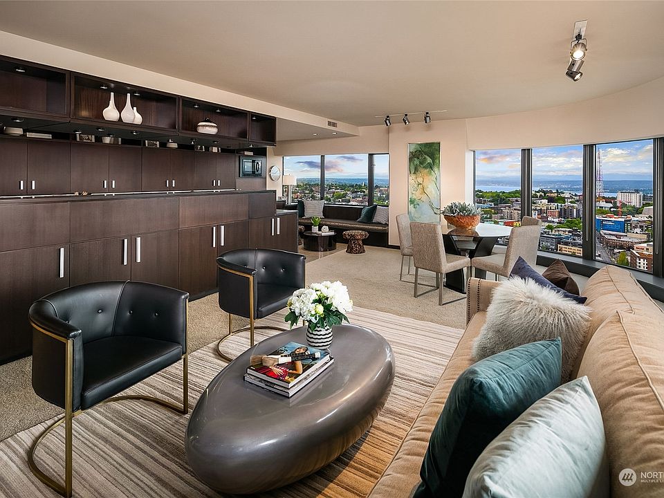 Known for unobstructed and panoramic views, First Hill Plaza remains a classic expression of luxury and elegance. The amenities and the lifestyle are second to none. Live luxuriously in this impeccably designed custom home on the 29th floor. 2 large bedrooms, 2 beautifully renovated baths. A drool worthy kitchen with custom cabinetry, slab stone, professional appliances and plenty of counter space. Redesigned open floor plan with plenty of room for a piano or large dining table. Amenities include: indoor rooftop heated pool, gym, spa, conference room, outdoor barbecue, tennis court and 24 door staff. On site manager Mon-Fri. Parking & storage. Assessment paid by seller.