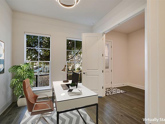 Experience modern urban living in this stunning executive-style brownstone, built in 2019 and located in one of Downtown/East Austin's most desirable areas. This sophisticated residence offers sleek design, high-end finishes, and thoughtful details throughout including wood flooring, 12-foot ceilings, motorized remote controlled window shades throughout, smart home features, and designer lighting. The main level features a flexible bedroom or home office with an ensuite bath, large closet, walk-in shower, and French doors. The attached two-car garage includes epoxy flooring and secure built-in storage. On the 2nd level, you'll find a chef's kitchen that's sure to impress- boasting quartz countertops, Bosch stainless steel appliances, a farmhouse sink, and an incredible custom pantry. Expansive windows fill the open-concept kitchen & living area with natural light and offer glimpses of the Lady Bird Lake Trail. The 3rd level is a private retreat dedicated entirely to the primary suite. Enjoy a spacious bedroom, luxurious spa-like bath with quartz counters, a soaking tub, and a walk-in shower with new glass doors. The custom-designed walk-in closet offers an ideal layout- perfect for organizing and showcasing your wardrobe and designer pieces. Nearby laundry closet includes an LG washer & dryer, with shelving and a clothes rack for convenience. The 4th/top level features the 3rd Bedroom with dual closets and ensuite bath, versatile game room, gym, or second living area. Sliding glass doors disappear into the wall, seamlessly extending the living space to a private rooftop terrace with gorgeous views and refreshing breezes. Additional highlights include 1 GB Google Fiber, Nest thermostat, and a monitored security system- all included in the lease. Enjoy an unbeatable walkable lifestyle near Oracle, Lady Bird Lake, Walking Trails, East ATX shopping, dining, and entertainment, with quick access to I-35 and Downtown Austin. Pets considered on a case-by-case basis.