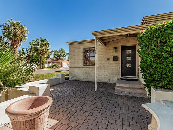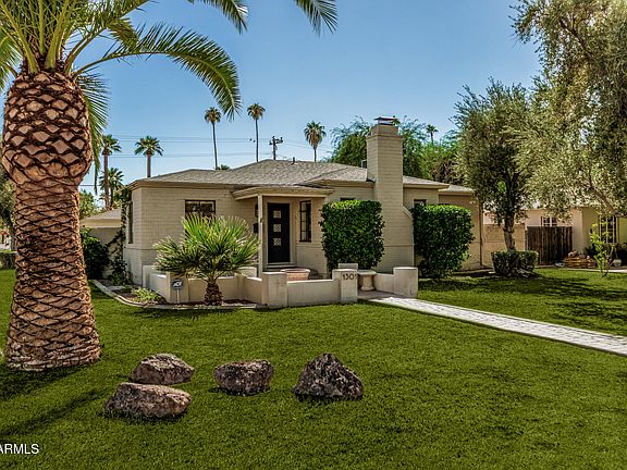 Beautifully remodeled home in the highly sought-after Encanto neighborhood, ideally situated on a large corner lot across from Encanto Park, Sports Complex, & Golf Course. Listed on the National Register of Historic Places, this timeless gem blends classic charm w/ modern comfort. Open floorplan w/ a spacious living room, brick fireplace, new LVP flooring & renovated eat-in kitchen w/ granite counters & gleaming stainless steel appliances. Large primary suite offers walk-in closet & gorgeous remodeled bathroom w/ glass shower. Secondary bedrooms are spacious, & 2nd bathroom also beautifully remodeled. Relax in your peaceful, private backyard w/ extended pavers & firepit. Detached 2-car garage plus a 480 SF finished second garage - perfect for a workshop or future casita. Not to be missed! New LVP flooring in house installed just two months ago, and new tankless water heater installed in 2025. HVAC replaced in 2022, and primary bath was remodeled in 2023. Enjoy living in this peaceful, beautiful historic neighborhood close to endless shopping, dining, and entertainment.