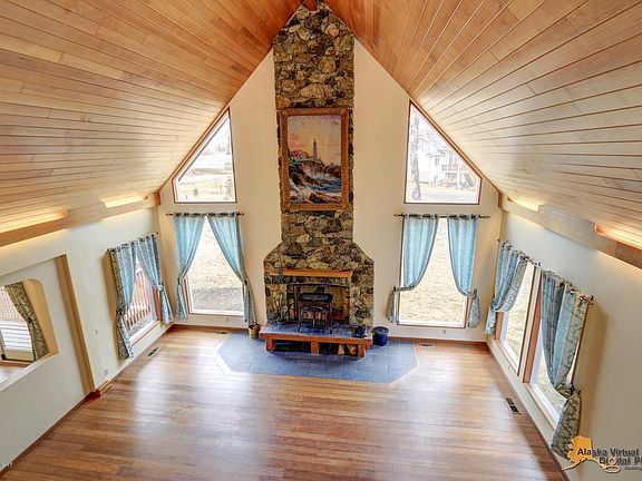 Classic Chalet on 1.75 acres in Wasilla. # bedroom, 3.5 Baths, 2 Living areas, tons of storage. 2 Car attached Garage, and a 2 car detached garage! Lots of wood trim, tile entry, vaulted wood ceilings, Master Bedroom has Vaulted ceilings., a large Master Bath and jetted tub, with separate tiled shower, Mature Landscaping and Yard. Garden, green house. Partially finished Basement. Circle Drive.