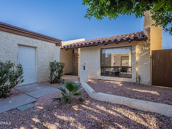 Charming 2 bed, 2 bath Remodeled Townhouse in Mesa! This home features a Vaulted living room with fireplace, Plus New Wood plank tile flooring, carpet, Paint & fixtures throughout. Kitchen has New White shaker cabinetry, quartz counters, tile backsplash & comes with Stainless Steel Appliances. Primary Suite includes walk-in closet, 3/4 ensuite with dual vanity & a private exit to backyard. This home offers a truly unique opportunity to create your own dream yard!! Minutes to Hohokom Stadium, ASU & 202 fwy. Community Pool perfect for AZ summer adds to it's appeal, making it a charming home for anyone who is interested.