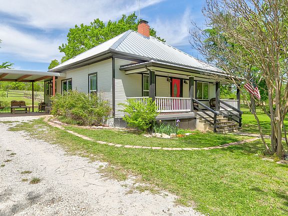Step back in time while enjoying the comforts of today with this charming early 1900s county home. Nestled on beautifully maintained land surrounded by mature trees, this two-bedroom, one-bathroom retreat offers the privacy of rural living—without the long commute to town. Inside, the cozy living room invites you to unwind by the fireplace, the perfect place to warm up on crisp country evenings. The kitchen provides all the charm you'd expect, complete with abundant cabinetry that’s ready for your favorite cookware, mismatched coffee mugs, and perhaps a cookie jar or two. Take in your morning coffee or a sunset breeze on the welcoming front porch, practically designed for rocking chairs and relaxed conversations in mind. A durable metal roof adds both character and peace of mind, offering timeless appeal and long-term function. This home’s location strikes a balance between the quiet of the county and the convenience of being just minutes from the heart of town. It’s a true win-win for those looking to enjoy country charm without straying too far from the daily essentials. This home’s manageable size makes it ideal for those seeking simplicity, a weekend escape, or a peaceful full-time residence. With a little imagination and personal touch, this hidden gem could be your perfect slice of the countryside—no compass required.