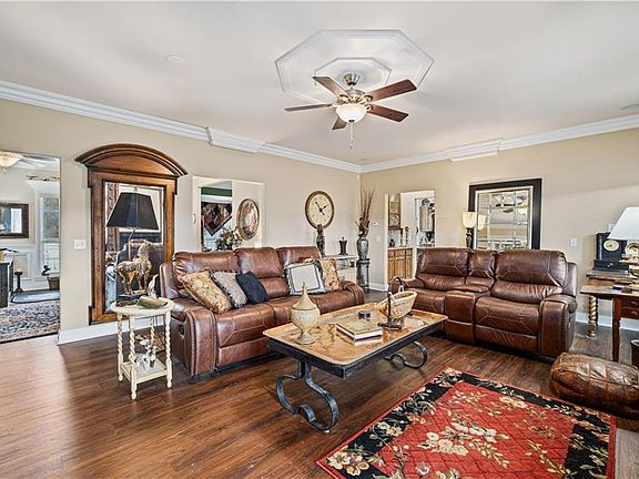 Perfect setting for country living! This house has room for everything 2 living areas, office, eat in kitchen, massive sized master bedroom & bath, great kitchen with stainless appliances, granite, island, super sized laundry/mud room, butler's pantry, plus multiple pantries, 3 bedrooms upstairs & 2 full baths, tons of storage everywhere! The detached over sized 3 car garage comes complete with a bonus upstairs ready for you to hang out and enjoy privacy! In the wonderful 4+ acres, have your horses, room to park your RV, great storage bldg, barn with tack room, 4 stables, soft matting flooring in barn, pole sheds, separate fencing. Roof was new in 2018, newer flooring downstairs