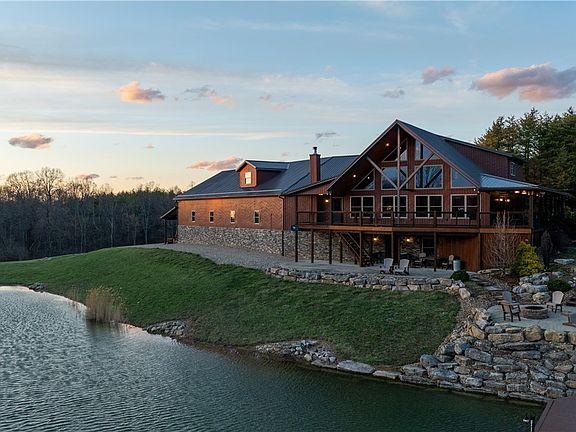 finished walkout basement, and a wraparound deck with panoramic views of the pond and wooded hills. The stamped