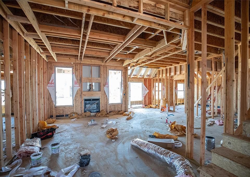 This Sage Bonus Room 2 floor plan features 2,550 Sq ft of total living space, which includes 2,300 Sq ft of indoor space and 250 Sq ft of outdoor living. There is also a 625 Sq Ft, three car garage with a storm shelter installed. This new build offers 4 bedrooms, 3 full baths, 2 covered patios, a large bonus room, and a sizeable utility room. The great room presents a noteworthy coffered ceiling with crown molding and a ceiling fan, 2 seven ft windows, wood-look tile, rocker switches throughout, and Cat6 wiring. The kitchen supports well-crafted cabinets to the ceiling, 3 CM countertops, stainless steel appliances, including a 5-burner cooktop, pendant lighting, a center island with a trash can pullout installed, modern tile backsplash, and a large corner pantry. The prime suite boasts a sloped ceiling detail with a ceiling fan, large windows, and carpeted flooring. The large prime bath features dual vanities, a European walk-in shower, a free-standing tub, a private water closet, and a huge walk-in closet with both vertical and horizontal storage. The covered outdoor living area is ready to entertain with the included wood-burning fireplace, gas line, and TV hookup. This new home also features a tankless water heater, a whole home air purification system, R-44 insulation, and so much more!