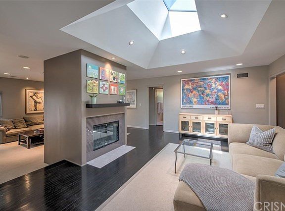 Sensational, one-story perfection, on a lovely tree-lined street in the sought-after neighborhood of Hidden Woods. Casual & tasteful sophistication throughout. The open & flowing floor plan is perfect for entertaining and everyday living. The thoughtfully designed interiors feature a front living room with a soaring, architectural ceiling and an oversized skylight, all open to the dining area. Additional amenities include a custom designed fireplace, dark stained wood floors in public areas, recessed mini-lighting & tons of dual-paned windows. The relaxed & comfortable step-down family room offers a built-in entertainment system. The gourmet cook's "galley style" kitchen has granite counters, stone backsplash, custom cabinetry and a Viking stainless stove. Next to the kitchen is a full laundry room with a half bath. Two generous, secondary bedrooms are separated by a full bathroom with a double sink vanity, tub & separate shower. The impressive Master Suite offers a high-pitched ceiling, custom gas fireplace, sitting area, recessed lighting, a spacious walk-in closet, French doors to the yard & a large master bathroom with a glass shower, spa tub & dual vanities. The award-winning, private backyard was custom designed. It features a very hip & modern, sparkling lap pool with a protective electric cover, gas fire pit conversation area, dining area, tucked-away play area and a very private, electric gated, cement driveway with a detached two-car garage.