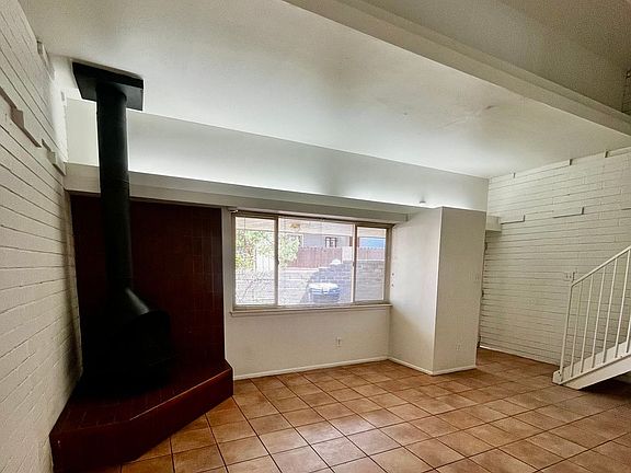 Bright 2br, 1b, 875sq. ft. two story townhouse features private gated front & back yard. Tiled 1st floor has wood burning stove, separated living and dining areas. Large storage under stairs. Dining area has sliding glass door to fenced backyard with covered patio that has a storage closet.