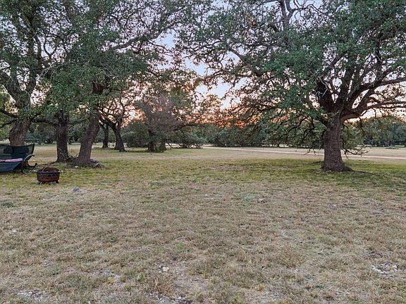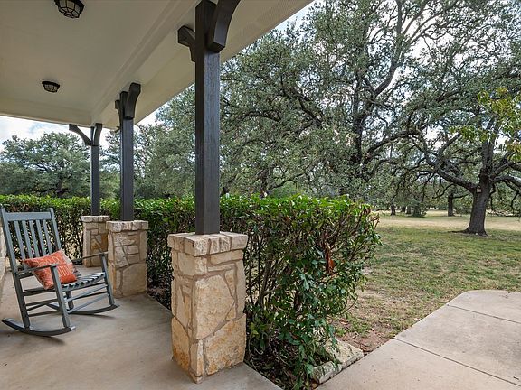 Experience peaceful Texas living on 10 private acres surrounded by scenic views and majestic oak trees. A gated entrance with an automatic opener welcomes you into this beautiful property featuring a 4-bedroom home with an office, 2.5 bathrooms, and an attached 2-car garage. Inside, soaring ceilings with floor to ceiling living room windows and a rock fireplace create a warm, inviting living space. The kitchen offers abundant storage including a custom spice drawer, new appliances within the last 3 years—stove, convection microwave, oven, and dishwasher—and a large under-stair pantry. The spacious primary suite on the main level features a walk-in shower with bench seating and a bright, oversized closet. Enjoy thoughtful updates completed in August 2025: upgraded LVP flooring with transferable warranty, interior and exterior paint on all buildings, new fixtures and toilets in all baths, and a 50-year roof. The home also includes new well pump (2022), hot water heater (2025), ceiling fans, and wiring on eaves for lighting or holiday décor. Outdoors, relax on the wide front and back porches while taking in peaceful Texas sunsets with views of turkey and deer. The fenced property offers a 3-car carport with workshop space, RV hookups with 50-amp service, dog kennel, kids’ play area, and a remote-entry gate with lock feature. The underground hog-wire fencing, extra-thick foundation, and flood lighting add both security and function.