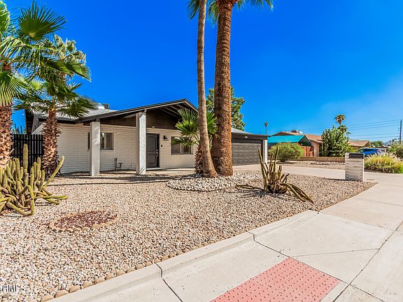 This stunning remodeled home offers high-end upgrades and timeless curb appeal. The bright open floor plan showcases a modern kitchen with white cabinetry and quartz countertops. The primary suite features a custom closet, while the spa-inspired bathroom includes a luxurious rainfall shower head. Step outside to enjoy mountain views from the spacious backyard, complete with low-maintenance landscaping, a covered patio, built-in barbecue, and sparkling pool—perfect for entertaining or quiet relaxation. Thoughtfully designed inside and out, this home blends elegant finishes with everyday comfort, creating an inviting retreat that embodies the best of Arizona living. See Documents Tab for list of improvements which include AC replaced in 2023 and Water Heater replaced in 2021.