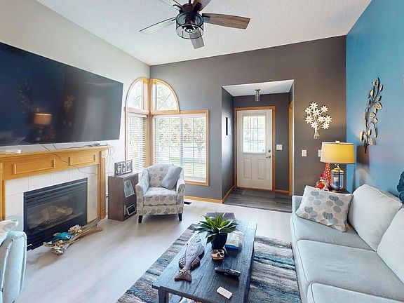 Beautiful 2BR/3BA end-unit townhome in Blaine with an open floor plan you'll love! The spacious living room is filled with natural light and features a cozy fireplace, opening to a dedicated dining area and a bright sunroom with French doors and walkout to the deck—perfect for relaxing or entertaining. The kitchen includes stainless steel appliances and a breakfast bar, ideally positioned between the living and dining spaces. The main level offers the primary bedroom with a private 3/4 bath, a convenient half bath, and in-unit washer & dryer. The finished lower level includes a large family room, generously sized bedroom, full bathroom, and a huge unfinished storage area. Located in a quiet neighborhood with greenway access to Ostman Park and nearby walking/biking trails. Close to shopping, dining, and an easy commute—this home has it all!