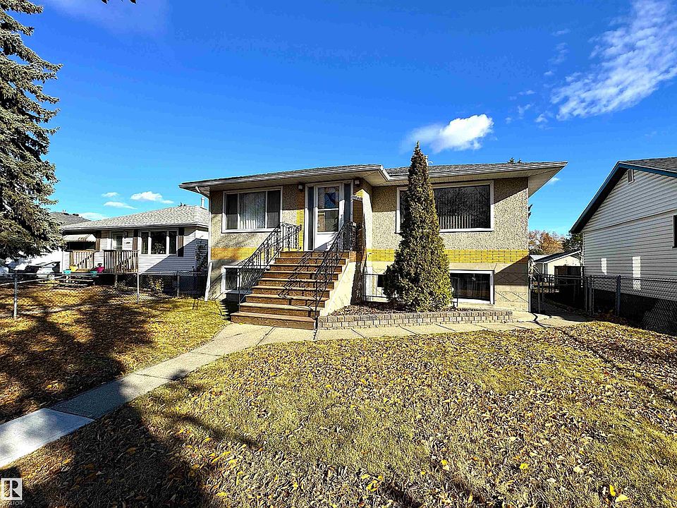 Wonderful starter home on a gigantic 181’ deep lot! (frontage is 46’ according to available Real Property Report). This 2+2 bedroom raised bungalow features an exterior second entrance directly to the basement where there are huge windows in the downstairs kitchen, family room and bedrooms letting in a tremendous amount of natural light. The City of Edmonton Property Assessment Notice lists this home as a "One Family Dwelling with Suite". Upgrades include furnace (2023), shingles (2020), 100 amp electrical (2016), plus two updated four piece bathrooms, replaced garage doors, and more! There is an insulated double detached garage approximately 22’ wide by 24’ deep. Tremendous opportunity with this well maintained property located on a quiet street, definitely a must see!
