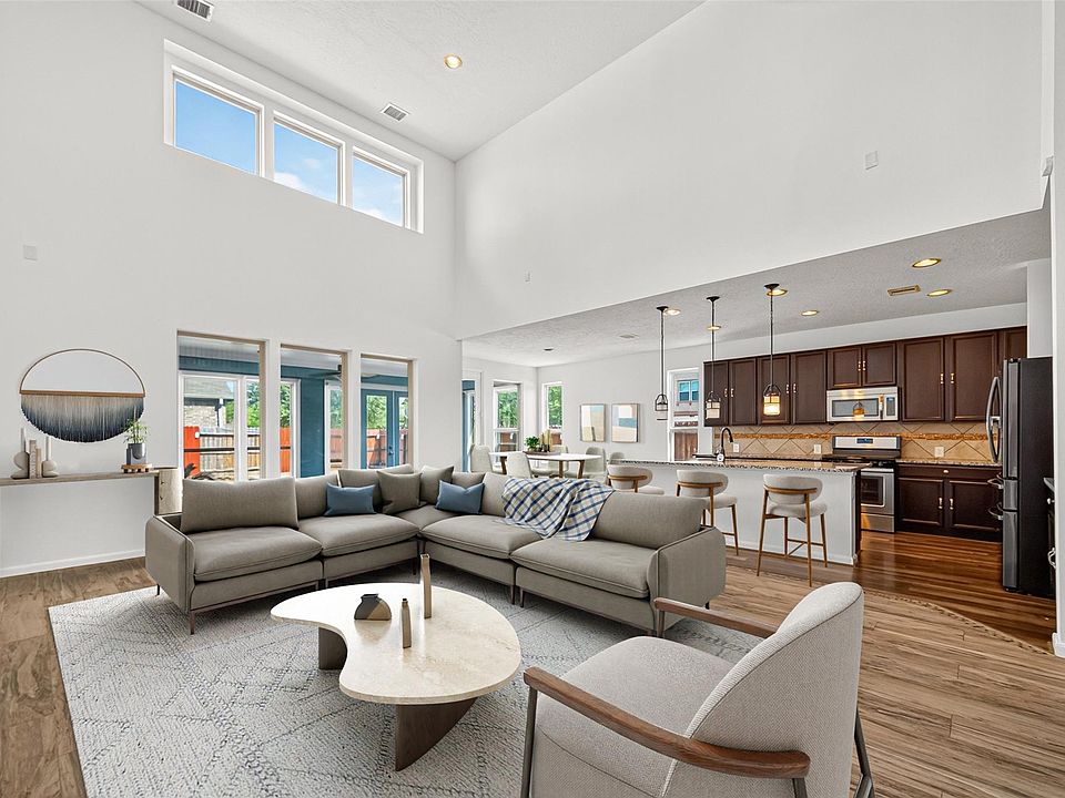 Step inside to discover soaring ceilings in the living room and 9-foot ceilings throughout the main floor, creating a spacious and airy ambiance. The primary suite is conveniently located on the first floor, along with an additional bedroom perfect for guests or a mother-in-law suite.
