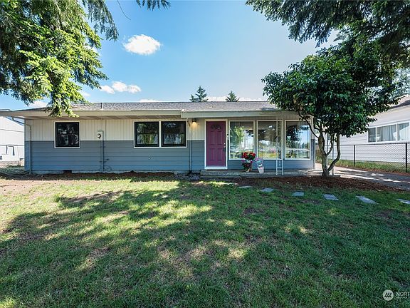 Welcome to this charming rambler, offering ideal affordability and move-in ready perfect starter home! This warm abode welcomes you with an inviting open area and updated kitchen for comfort with a modern touch. The home’s newer roof, lovely laminate flooring, updated kitchen, stainless appliances, quarts counters, subway tile backsplash, and floating shelves all provide a simple move in. The primary bedroom has added space for a possible walk-in closet or office. Located across the street from a newer elementary school! Conveniently located near Highway 512, Pacific Ave,and JBLM, commuting is a breeze with easy access to Tacoma, Parkland, Puyallup and beyond. Don't miss this incredible opportunity to call this charming residence your own!