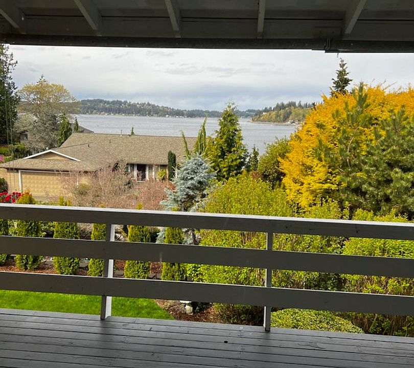 Lovely and peaceful place to call home.This home has a covered carport with some storage area. As you enter the home on the main level, the master suite is conveniently located to your right. It boasts a 5 piece master bath with generous closet space and a well designed closet within the bathroom space. Both the front room and the dining area allow sweeping views of Wollochet Bay and a feeling of openness as you can see unobstructed all the way to the Fox Island bridge. The covered deck off the living room also gives you the ability to enjoy the view and still be sheltered from the rain that we are famous for. 2 additional bedrooms can be found downstairs along with a lovely finished office/multipurpose space that has its own exterior entry. Full size washer and dryer are included. Hardwood floors cover the main floor and downstairs is carpeted. Each adult must make application at $40 per applicant. There is a 300 Non refundable cleaning fee. Also, each adult must be covered on a renter's insurance policy or we can provide coverage for a reasonable fee each month.