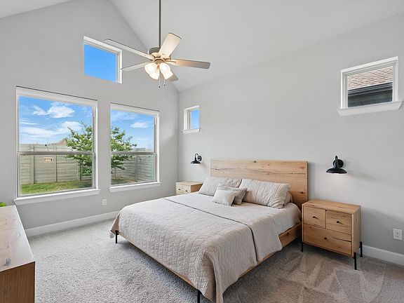 Open concept design with 4 bedrooms, 4 full baths, 1 half bath, formal dining, a dedicated office or flex space, and expansive main living areas. Chef style kitchen features a large quartz island, stainless steel appliances, 5 burner gas cooktop, built-in oven and microwave, walk-in pantry, and ample cabinetry. Retreat to a private primary suite with a spa inspired bathroom featuring a soaking tub, oversized walk-in shower, dual vanities, and a massive walk-in closet with laundry access. Soaring ceilings, wood look flooring, upgraded lighting and fixtures, ceiling fans, and built-in smart home technology throughout. Covered back patio perfect for gatherings or peaceful evenings. Prime location in the community that backs up to a peaceful green space!