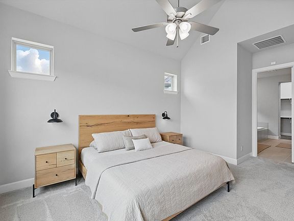 Stainless steel appliancesCeiling fansFormal diningCovered back patioOversized walk-in showerSoaking tubSoaring ceilings