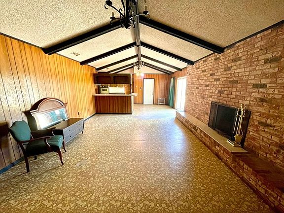 Brick home on a corner lot. Spacious yard with covered parking. Interior has two large living areas, with plenty of storage space. Perfect for a large family.