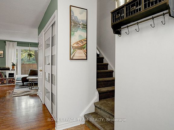 Located at the end of a peaceful cul-de-sac, and lovingly updated throughout, this townhome offers tremendous value for the savvy investor or first time buyer. This 3 bedroom, 2 bathroom home features a renovated, bright and spacious 4 piece bathroom (2022), stylish and spacious bedrooms, loads of storage space, a finished basement (2021), and a fully landscaped, private backyard complete with an extended fence (2023). As you enter the home, you'll discover a thoughtful layout that flows effortlessly. A pass through in the kitchen carries you to the open concept dining and living areas which lead you out into the private backyard. New flooring in the lower and upper levels balance comfort with low maintenance, while whimsical touches, and thoughtful design maximize space throughout. The flex space in the basement is currently being used as a gym, but could be easily modified for a variety of needs, possibilities abound. Added bonuses include a backyard that leads to a gorgeous communal green space and walking path; only 10 minutes away from the Blair LRT station, and your own parking space right in front of the unit that is maintained year round by the condo corp. Private parking: no shovelling required.