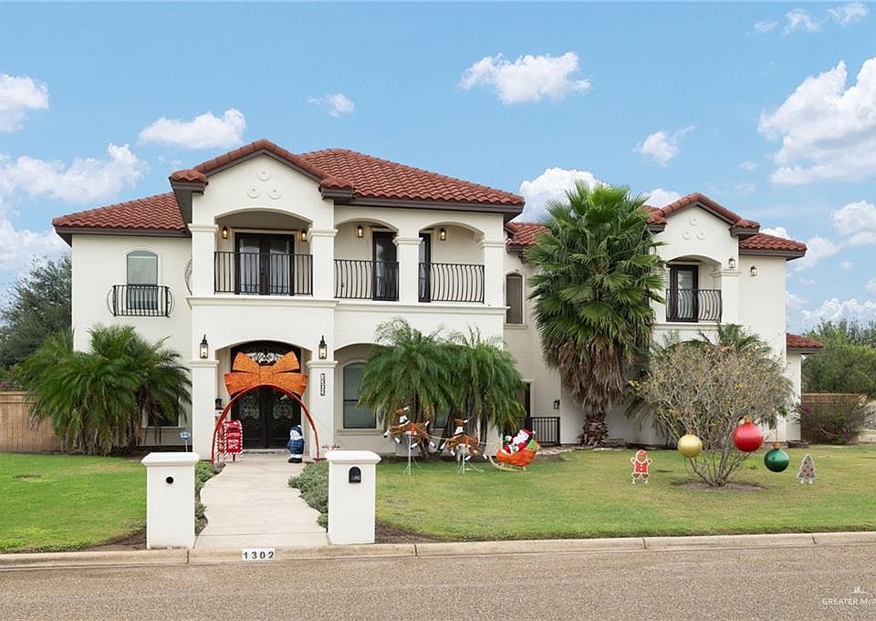 Experience exceptional living in this beautifully remodeled two-story home on over half an acre spanning two lots in the prestigious Tierra Santa Golf Club Community. This 4-bedroom home offers inviting living areas, an elegant wrought-iron staircase, and an impressive theatre room/mancave. All bedrooms are located upstairs, including an oversized primary suite featuring a decorative high ceiling and French doors opening to a private balcony overlooking the backyard. Outdoors, enjoy two covered patios, a full east-facing outdoor kitchen, and a sparkling pool. A rear-access two-car garage with a motorized gate adds convenience and security. This property combines space, style, and thoughtful upgrades in one of Weslaco’s most desirable gated communities, offering an unmatched lifestyle within Tierra Santa.