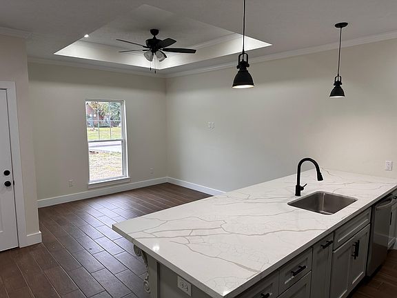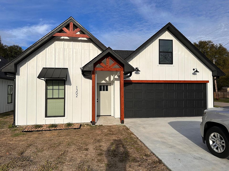 Newer construction 3/2/2 modern farmhouse completed December 2023 and located in a well established Port Neches, Tx neighborhood. Imagine living in this beautiful home that includes an 11ft quartz kitchen peninsula, soft close cabinetry throughout, pull out shelves in kitchen, sensor operated kitchen faucet, large master suite with dual showers in master bath including glass enclosure, vessel sinks with tall modern faucets, slow close toilet seats, tiled to the ceiling showers, auto dusk to dawn exterior lighting, 10ft tray ceilings, complete appliance package including washer/dryer and high end refrigerator, privacy fencing and much more that needs to be experienced in person.