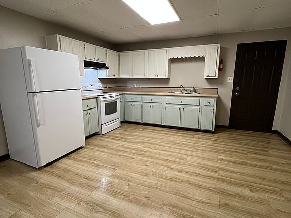 Well-maintained two-bedroom, one-bath apartment offering comfortable living with convenient features. The kitchen includes a stove and refrigerator, and the unit is equipped with washer and dryer hookups for added convenience. A separate storage area provides extra space for belongings.
