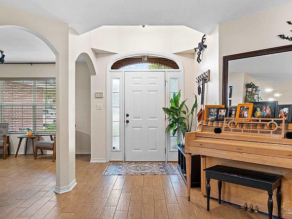 Welcome to this spacious 4 bedroom, 3 bathroom home in Tiger Point Village! New 2025 Roof!! Conveniently located to shopping, dining, Tiger Point Golf Course, & Tiger Point Park. Inside, you'll find a formal dining room or bonus room, an open concept kitchen, and 2 separate living spaces - one with a fireplace! The kitchen offers plenty of space - perfect for entertaining - with ample cabinet and countertop room & a breakfast bar! Off the kitchen to the right, you have 2 bedrooms with a full bathroom in between. On the left side of the home, you'll find the 3rd additional bedroom with a full bathroom and the primary bedroom with an ensuite bathroom. Each bathroom offers beautiful granite countertop vanities & the primary bathroom offers a garden tub, separate shower, water closet, and double vanity! Step outside to the backyard, where you'll find an inviting screened-in porch, perfect for relaxing or enjoying your morning coffee! The spacious backyard also features an above ground pool, a fire pit, and a treehouse-style playset with a sitting area and slide!