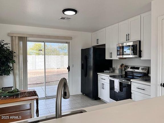 /mountain views & RV parking and gate. Inside find a sweet setup w/most everything new from paint outside & in, new interior doors/hardware, brand new kitchen cabinets, sink, new range, microwave & dishwasher. Two pleasant sized secondary bedrooms, coat & linen closets. Master bedroom has nice sized master bath & amazing walk-in closet. The backyard has a patio built to entertain, a curbed area perfect for artificial turf-plenty of room for star gazing at night. Perfect side yard wide/long enough to put all your toys & small shed suited for tools etc. Newer A/C and roof, all topped off with a 2 car garage. This home qualifies for the AZ is Home program offering up to $13,000 is assistance as well as reduced interest rate-ask your lender!