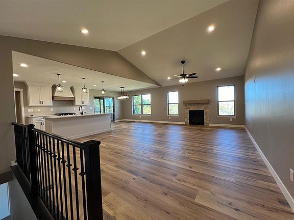 Pending- Closes 10/16. FINISHES WILL VARY. FINISHED PHOTOS ARE OF A SIMILAR PROPERTY. New walkout ranch with an open great room and dining area. Kitchen features white cabinets, quartz/granite counter tops, large pantry, stainless appliances and center island with breakfast bar. Deck off of the dining area. Laundry room is complete with drop zone and loads of storage! Gas fireplace. Primary bedroom has a private bathroom with dual sinks, walk-in closet and a tile shower with glass shower door. Walkout lower level has high ceilings, a large rec. room with access to the patio, 2 bedrooms, 1 bathroom, plus storage. 3-car garage. This home has mature trees and excellent views! Madden Addition features a paved walking trail and pedestrian bridge that connects to the Clear Creek Trail System and Coralville.