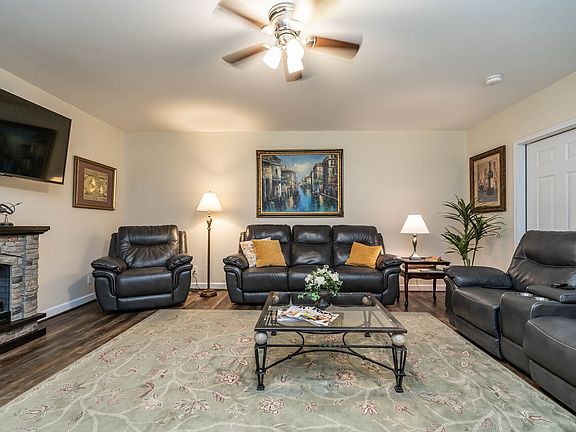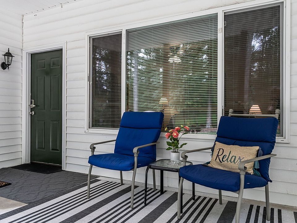 Fire placeNice patio overlooking woodsTile showerGranite counters in kitchenPlenty of storageLarge walk-in closet