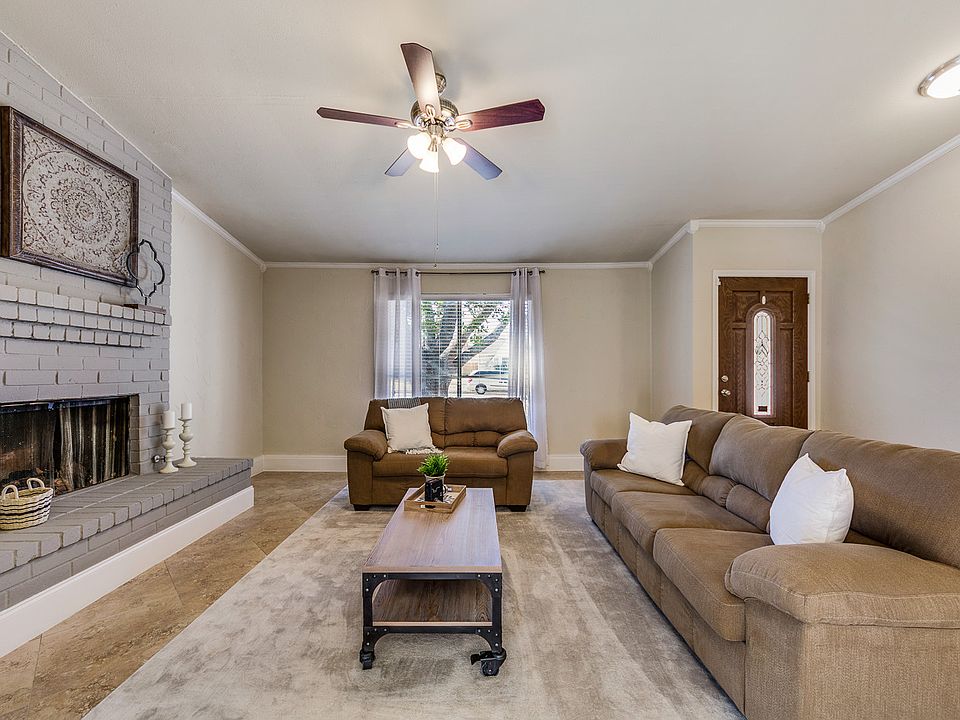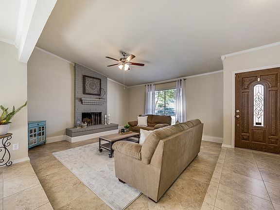 This 3 bedroom home in a quiet established neighborhood shows like a model. Mature trees. Remodeled with high end tile throughout, granite counters, subway tile backsplash, upgraded cabinets and lighting. Open concept, and NO CARPET! Large living area with vaulted ceiling and wood burning fireplace. Spacious kitchen - eat-in breakfast area with island and stainless steel appliances. Dining area features wet bar with subway tile backsplash and granite counter top, and french doors leading to the side patio and newly installed large deck. New wood fence borders the large back yard. Great home for entertaining, inside and out.