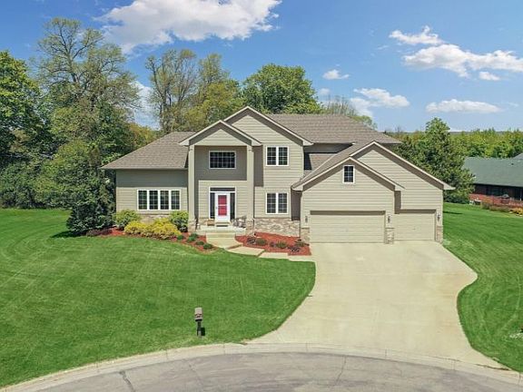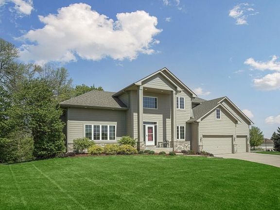 This stunning 4 bedroom home is a must see! Walk into the grand two-story entry way and immediately feel at home! This home features an open floor plan, a grand living room with a gas fireplace and vaulted ceilings, inviting and bright 3-season porch looking out a private back yard and large concrete stamp patio with embedded LED lighting, main floor laundry, walk in pantry, three bedrooms on the second floor including a spacious master suite with jacuzzi tub, separate shower and large walk in closet. The lower level is set up for entertaining with a bar, fireplace, and large family room. One of the main features of the home is the oversized 3 stall garage! This home is tucked back on a cul-de-sac, but conveniently only a few minutes from major highways! Set up a showing today!
