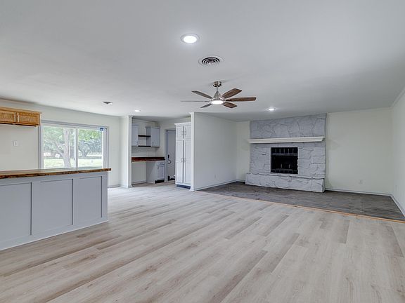 Recently renovated and move-in ready, this charming home welcomes you with an open-concept living area anchored by a stone-encased gas log fireplace. The light-filled kitchen features new cabinets, warm butcher-block and tile countertops, and a stainless steel sink perfectly placed beneath a window overlooking the partially fenced backyard. A sliding glass door off the kitchen opens directly to the outdoor space, ideal for entertaining or relaxing. A built-in desk area adds function, while the adjoining laundry room offers built-in cabinets and a convenient countertop for folding and storage. Down the hall, you’ll find a freshly updated bathroom with a stylish tile shower/tub combo and a modern vanity. Three generously sized bedrooms with ample closet space—and an additional hallway storage closet—complete this thoughtfully updated home.
