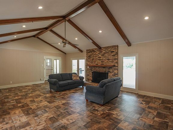 Welcome to this gorgeous 4-bedroom, 3-bathroom home with a 2-car garage, nestled on a spacious corner lot in the heart of Tyler, TX. Boasting 2,656 square feet, this beautifully maintained property features a sparkling pool with a slide, an attached mother-in-law suite, and thoughtful updates throughout. Inside, you're greeted by a large living room with soaring vaulted ceilings and a cozy gas log fireplace, perfect for relaxing or entertaining. The nearby kitchen offers a casual dining space, breakfast bar, gas cooktop and oven, and abundant cabinet storage, with a convenient utility room close by. The primary suite is generously sized with an ensuite bath that includes dual vanities, a walk-in shower, a separate soaking tub, and two spacious walk-in closets. The two additional bedrooms are comfortably sized with a nearby bathroom featuring a tub-shower combo. The attached mother-in-law suite adds incredible value and versatility, complete with its own kitchen featuring an electric range and over-the-range microwave, an eating area, living space, and a full bath with a standing shower. Step outside to a backyard oasis featuring a large covered patio overlooking the pool—perfect for summer gatherings and fun. You’ll also find a 224-square-foot shed with two lofts, offering plenty of extra storage or workspace options. This property is perfect for multi-generational living or hosting guests—don’t miss your chance to make it yours!