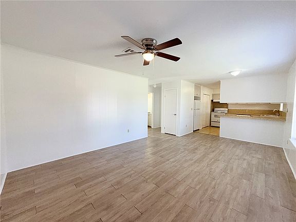 Freshly painted two-bedroom, one-bath duplex with an open floor plan and a kitchen featuring plenty of cabinet and counter space. Appliances include a white electric stove, oven, dishwasher, and refrigerator. Window over kitchen sink overlooking the front yard. Washer and dryer hookups are conveniently located in a kitchen closet. Both bedrooms are spacious, with one offering a sliding patio door that leads to the large backyard. The bathroom features a tub/shower combo. Parking includes a carport and an extra space. Yard care is included. Woodsboro is a charming town with lots of character. Nearby are Steel Dynamics Industry, Sinton restaurants, grocery stores, and boutiques. It's just a 30-minute drive to Corpus Christi and Portland for water activities and other amenities. North Hwy 77 provides access to Refugio or south to Corpus Christi.