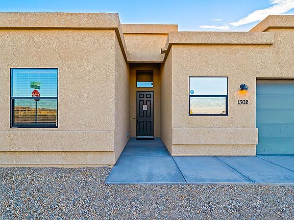 The backyard has been updated with a new extended patio, clean desert landscaping, and a kids bike track/play area that can stay or be removed for the buyer.