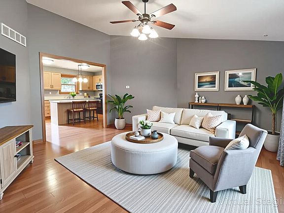 Welcome to this beautiful 4-bedroom walkout ranch nestled at the end of a quiet cul-de-sac in the sought-after Belmont Village neighborhood. This home features a split bedroom design with three bedrooms on the main level and a fourth bedroom and third full bath on the lower level. The main living area showcases hardwood floors and a spacious kitchen with a dining area, breakfast bar, and direct access to the back deck—perfect for entertaining or relaxing. The finished walkout basement offers a large family room with plenty of space for gathering. Enjoy the privacy of a fully fenced yard and the convenience of a two-car garage. A wonderful opportunity in a fantastic location!